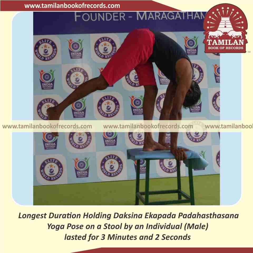 Longest Duration Holding Daksina Ekapada Padahasthasana Yoga Pose on a Stool by an Individual (Male)