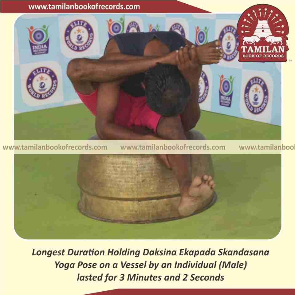 Longest Duration Holding Daksina Ekapada Skandasana Yoga Pose on a Vessel by an Individual (Male)