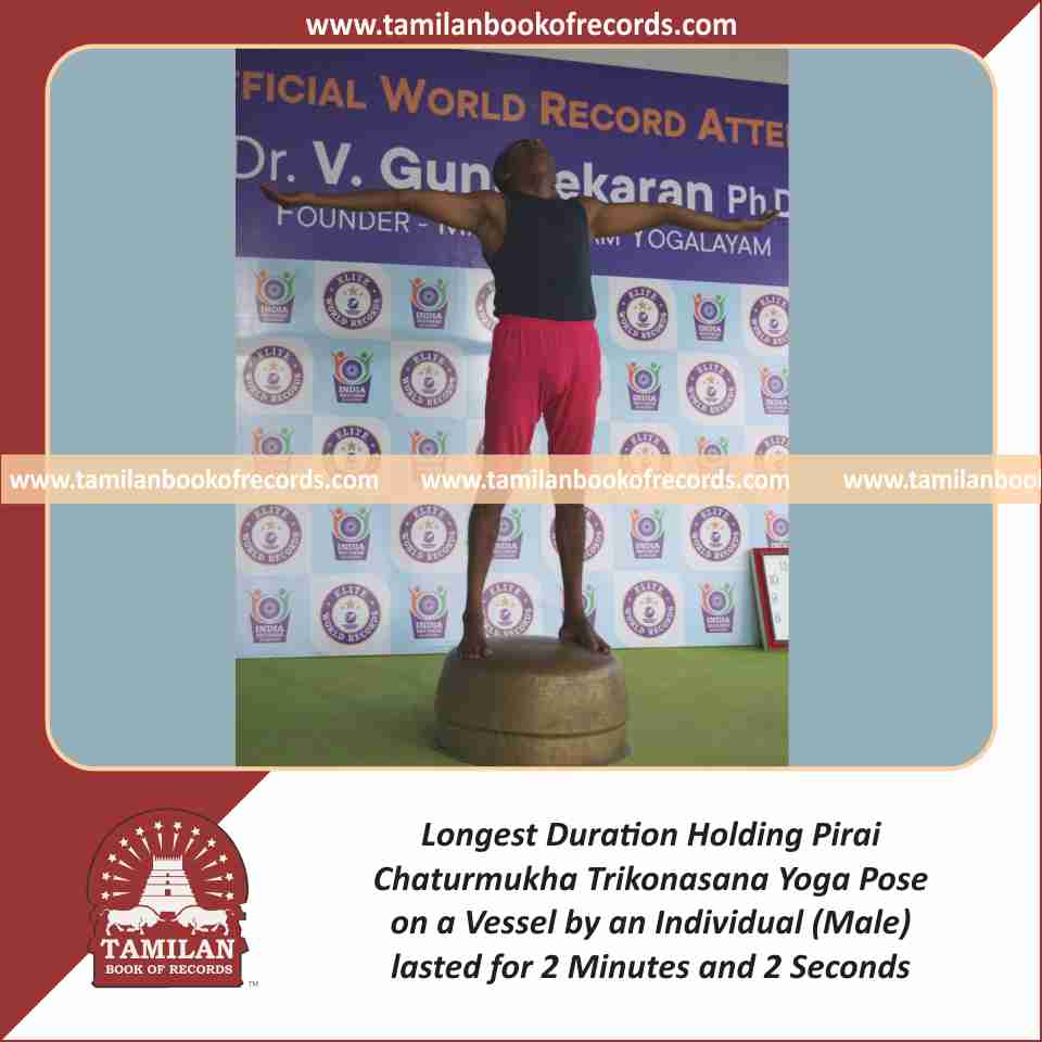 Longest Duration Holding Pirai Chaturmukha Trikonasana Yoga Pose on a Vessel by an Individual (Male)