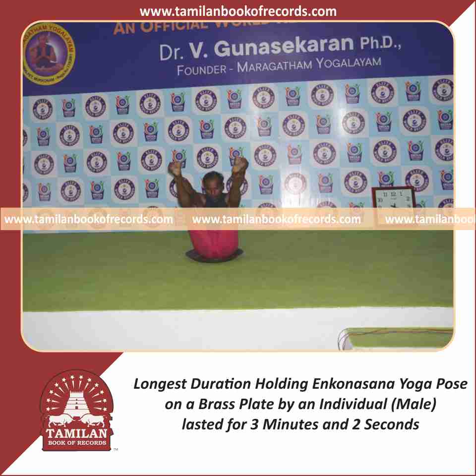 Longest Duration Holding Enkonasana Yoga Pose on a Brass Plate by an Individual (Male)