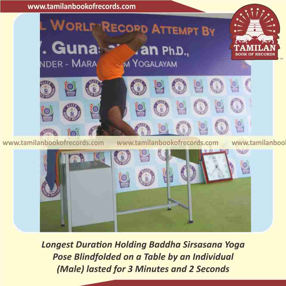 Longest Duration Holding Baddha Sirsasana Yoga Pose Blindfolded on a Table by an Individual (Male)