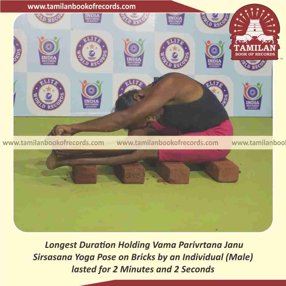 Longest Duration Holding Daksina Parivrtana Janu Sirsasana Yoga Pose on Bricks by an Individual (Male)