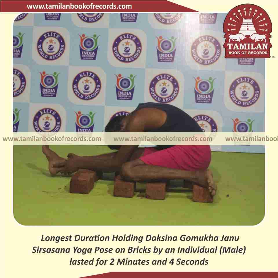 Longest Duration Holding Daksina Gomukha Janu Sirsasana Yoga Pose on Bricks by an Individual (Male)