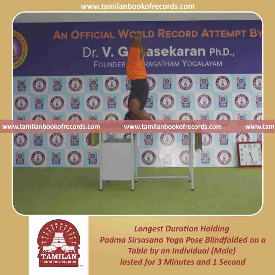 Longest Duration Holding Padma Sirsasana Yoga Pose Blindfolded on a Table by an Individual (Male)