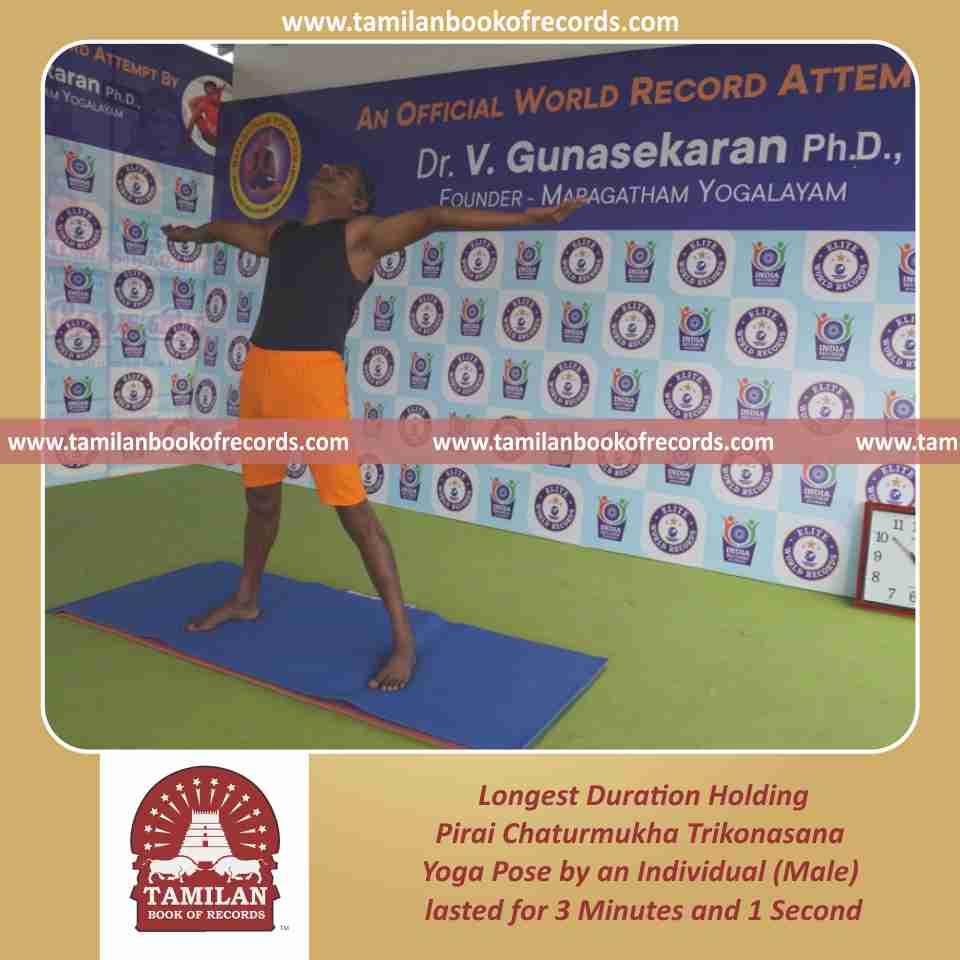 Longest Duration Holding Pirai Chaturmukha Trikonasana Yoga Pose by an Individual (Male)