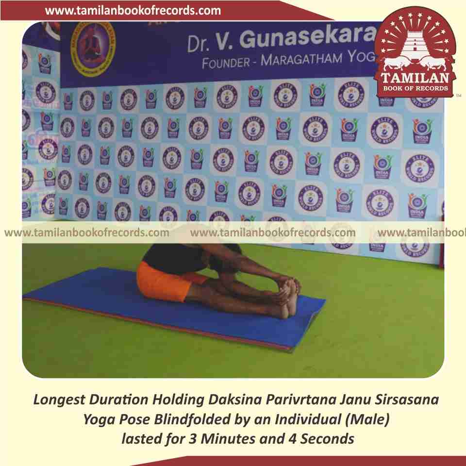 Longest Duration Holding Daksina Parivrtana Janu Sirsasana Yoga Pose Blindfolded by an Individual (Male)