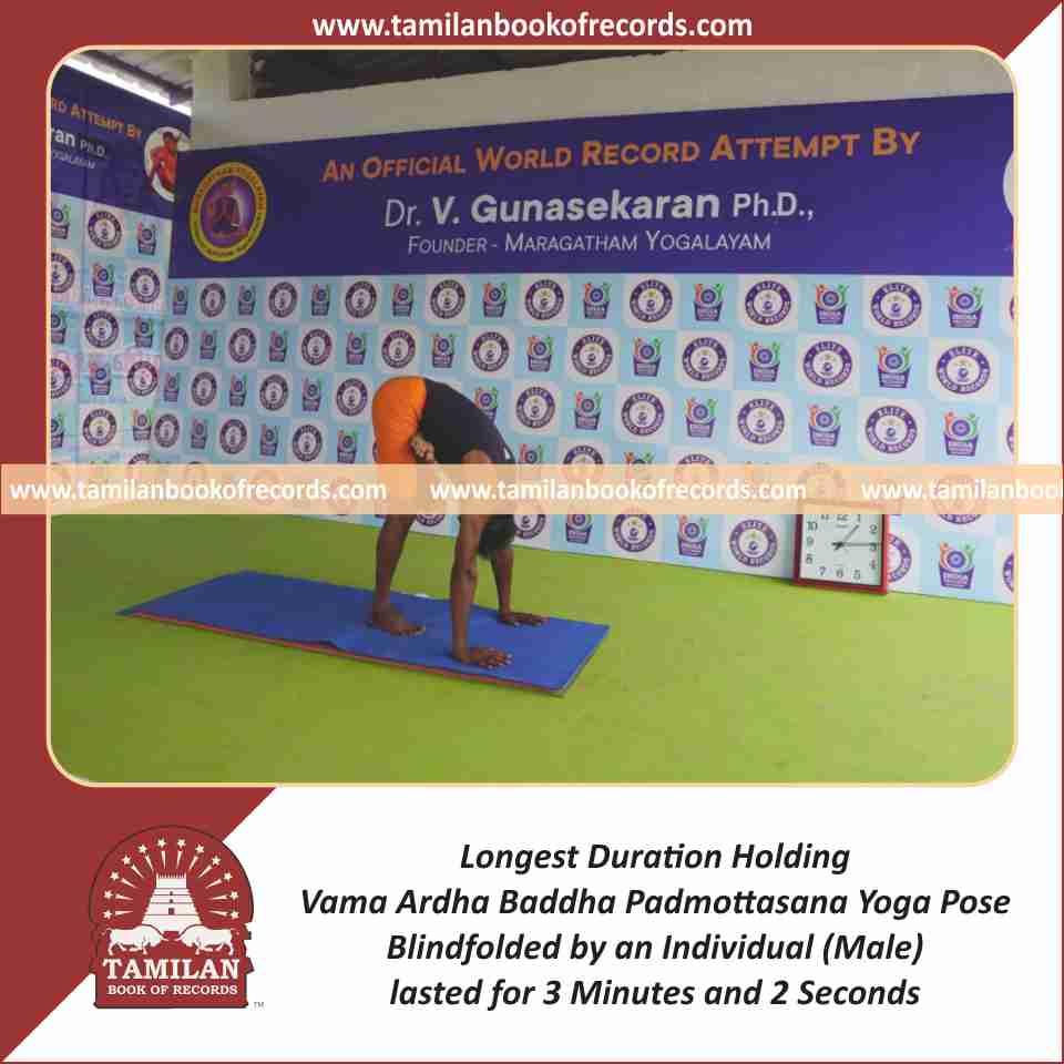 Longest Duration Holding Padahasthasana Yoga Pose Blindfolded by an Individual (Male)