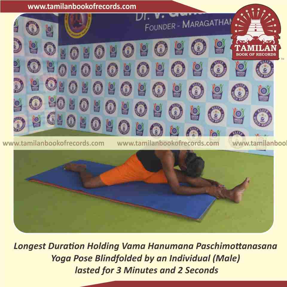 Longest Duration Holding Vama Hanumana Paschimottanasana Yoga Pose Blindfolded by an Individual (Male)