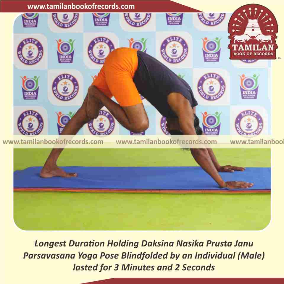 Longest Duration Holding Daksina Nasika Prusta Janu Parsavasana Yoga Pose Blindfolded by an Individual (Male)
