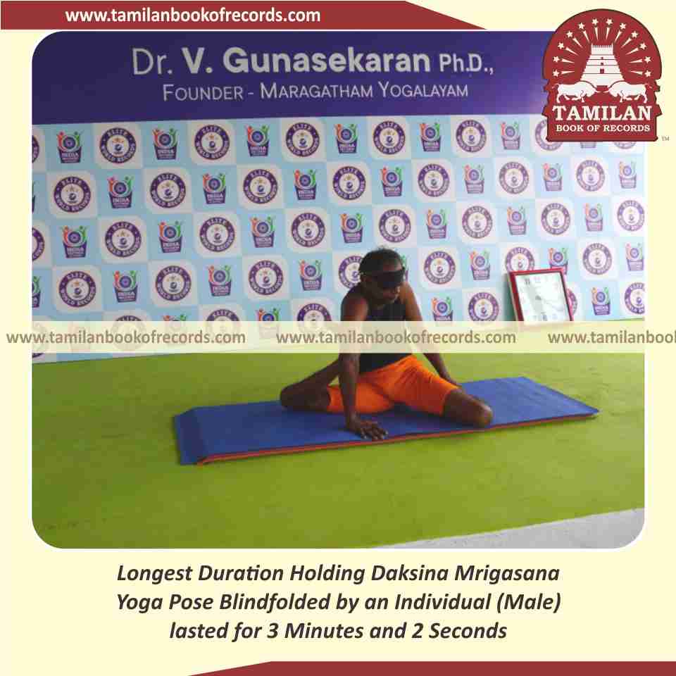 Longest Duration Holding Daksina Mrigasana Yoga Pose Blindfolded by an Individual (Male)