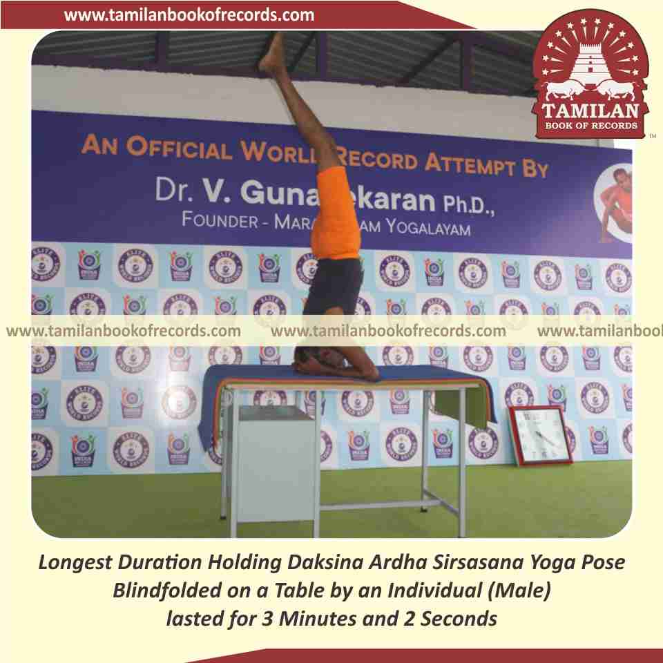 Longest Duration Holding Daksina Ardha Sirsasana Yoga Pose Blindfolded on a Table by an Individual (Male)