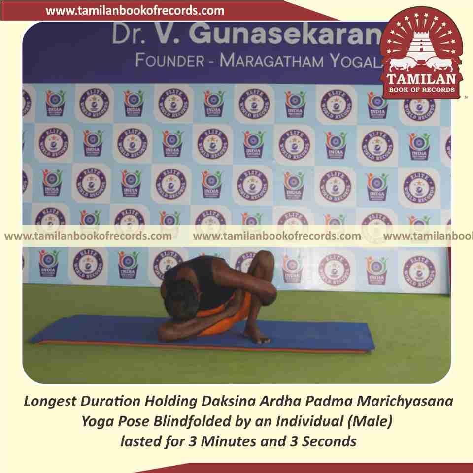 Longest Duration Holding Daksina Ardha Padma Marichyasana Yoga Pose Blindfolded by an Individual (Male)