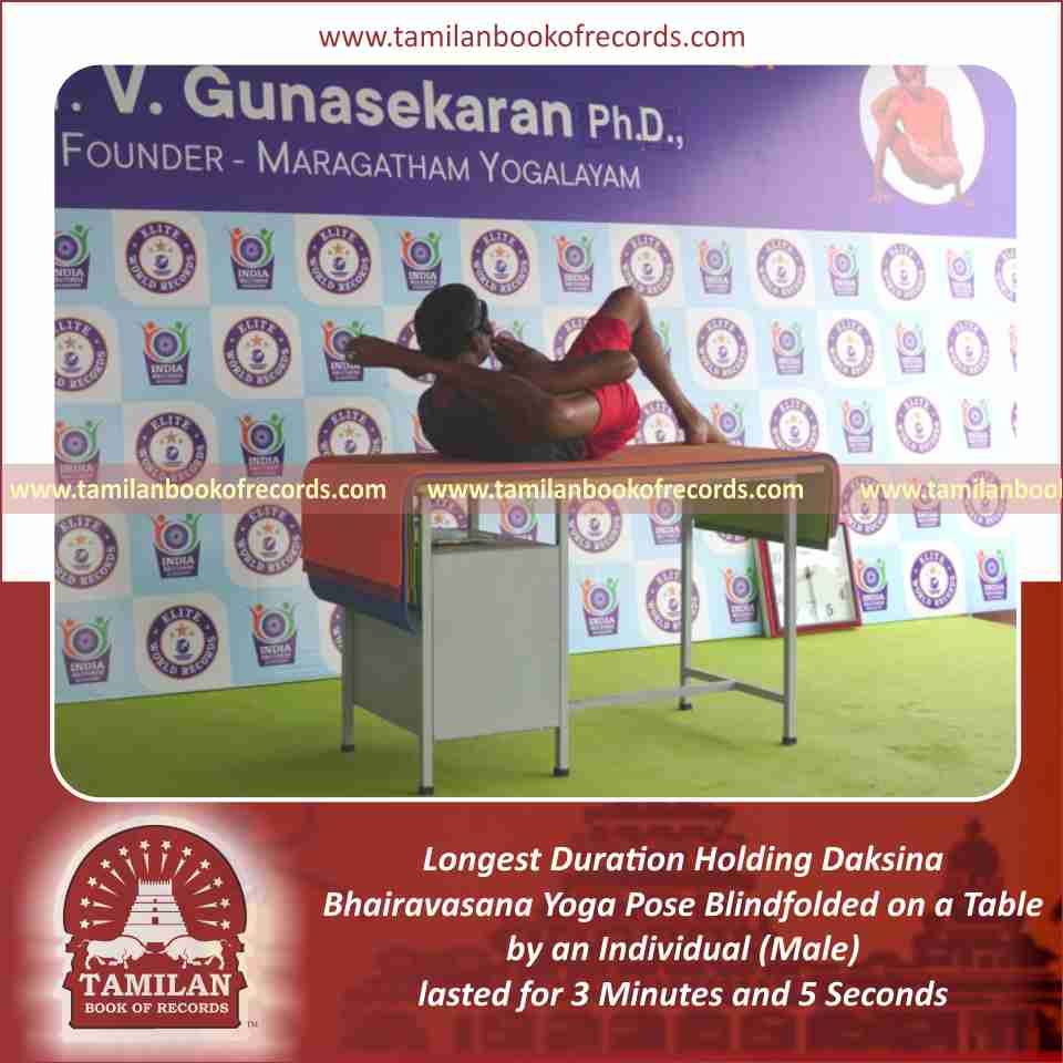 Longest Duration Holding Daksina Bhairavasana Yoga Pose Blindfolded on a Table by an Individual (Male)