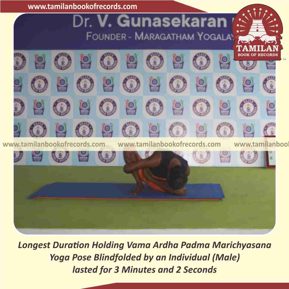 Longest Duration Holding Vama Ardha Padma Marichyasana Yoga Pose Blindfolded by an Individual (Male)