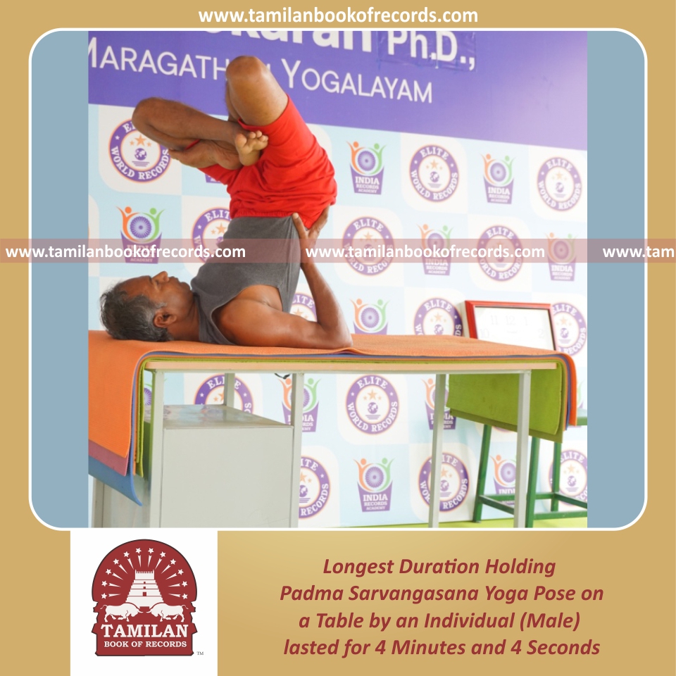 Longest Duration Holding Padma Sarvangasana Yoga Pose on a Table by an Individual (Male)