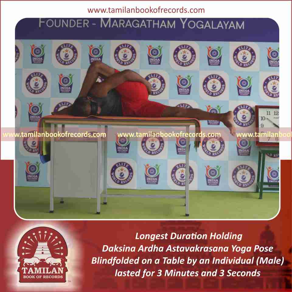 Longest Duration Holding Daksina Ardha Astavakrasana Yoga Pose Blindfolded on a Table by an Individual (Male)
