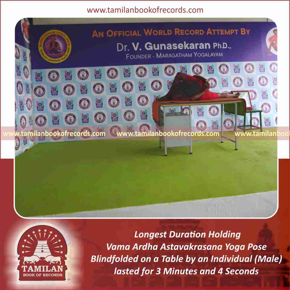 Longest Duration Holding Vama Ardha Astavakrasana Yoga Pose Blindfolded on a Table by an Individual (Male)