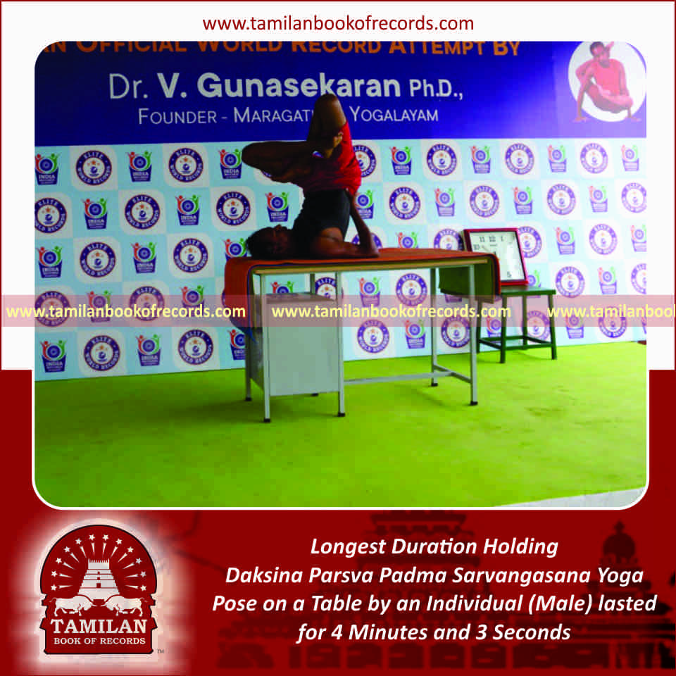 Longest Duration Holding Daksina Parsva Padma Sarvangasana Yoga Pose on a Table by an Individual (Male)
