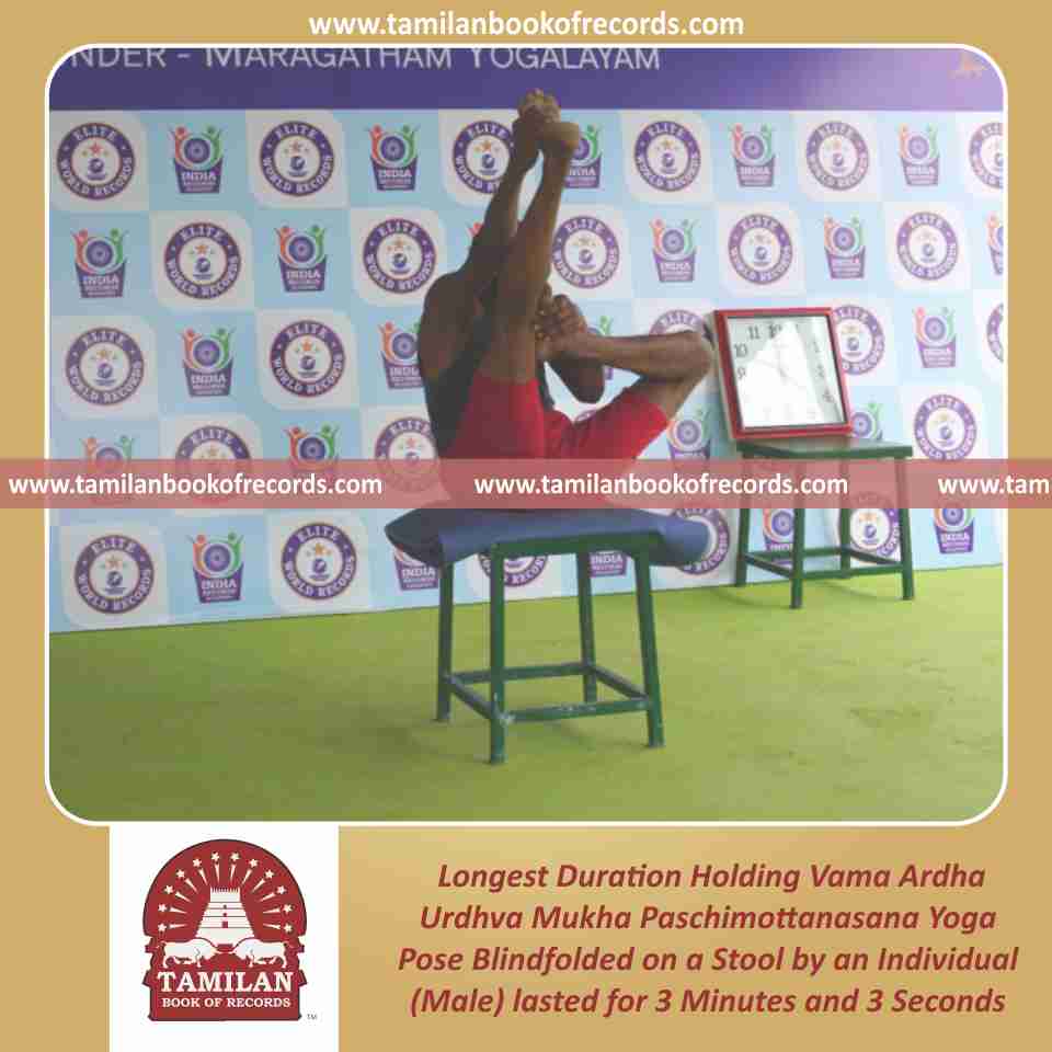 Longest Duration Holding Vama Ardha Urdhva Mukha Paschimottanasana Yoga Pose Blindfolded on a Stool by an Individual (Male)