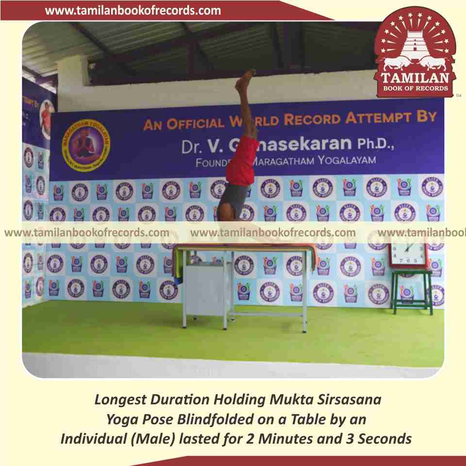 Longest Duration Holding Mukta Sirsasana Yoga Pose Blindfolded on a Table by an Individual (Male)
