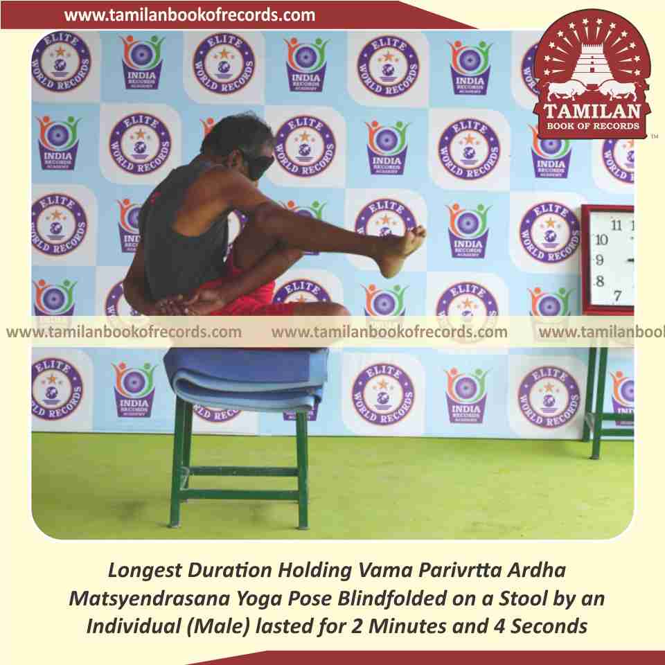 Longest Duration Holding Vama Parivrtta Ardha Matsyendrasana Yoga Pose Blindfolded on a Stool by an Individual (Male)