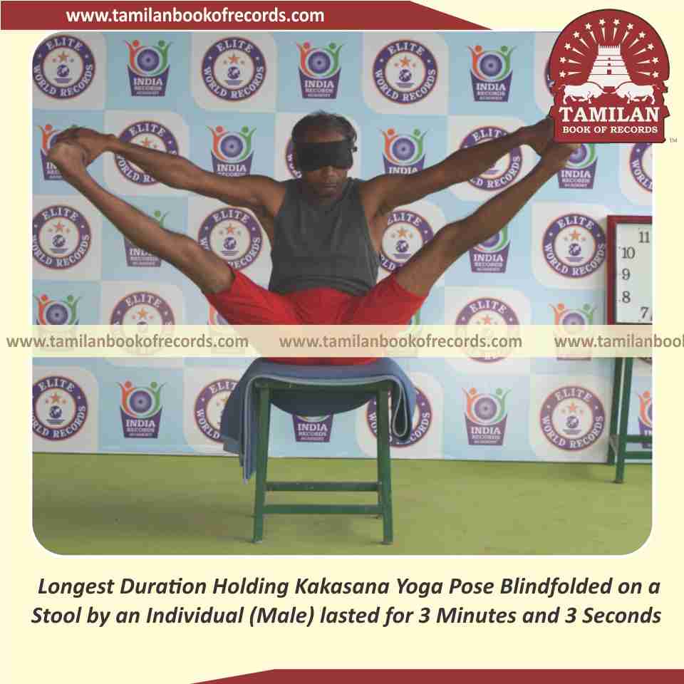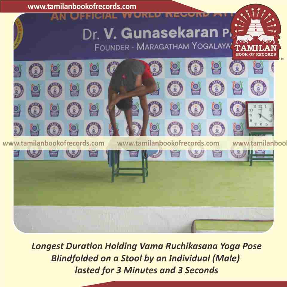 Longest Duration Holding Vama Ruchikasana Yoga Pose Blindfolded on a Stool by an Individual (Male)