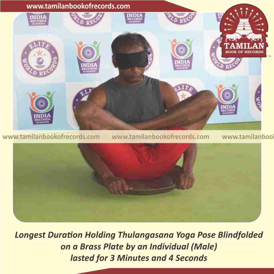 Longest Duration Holding Thulangasana Yoga Pose Blindfolded on a Brass Plate by an Individual (Male)