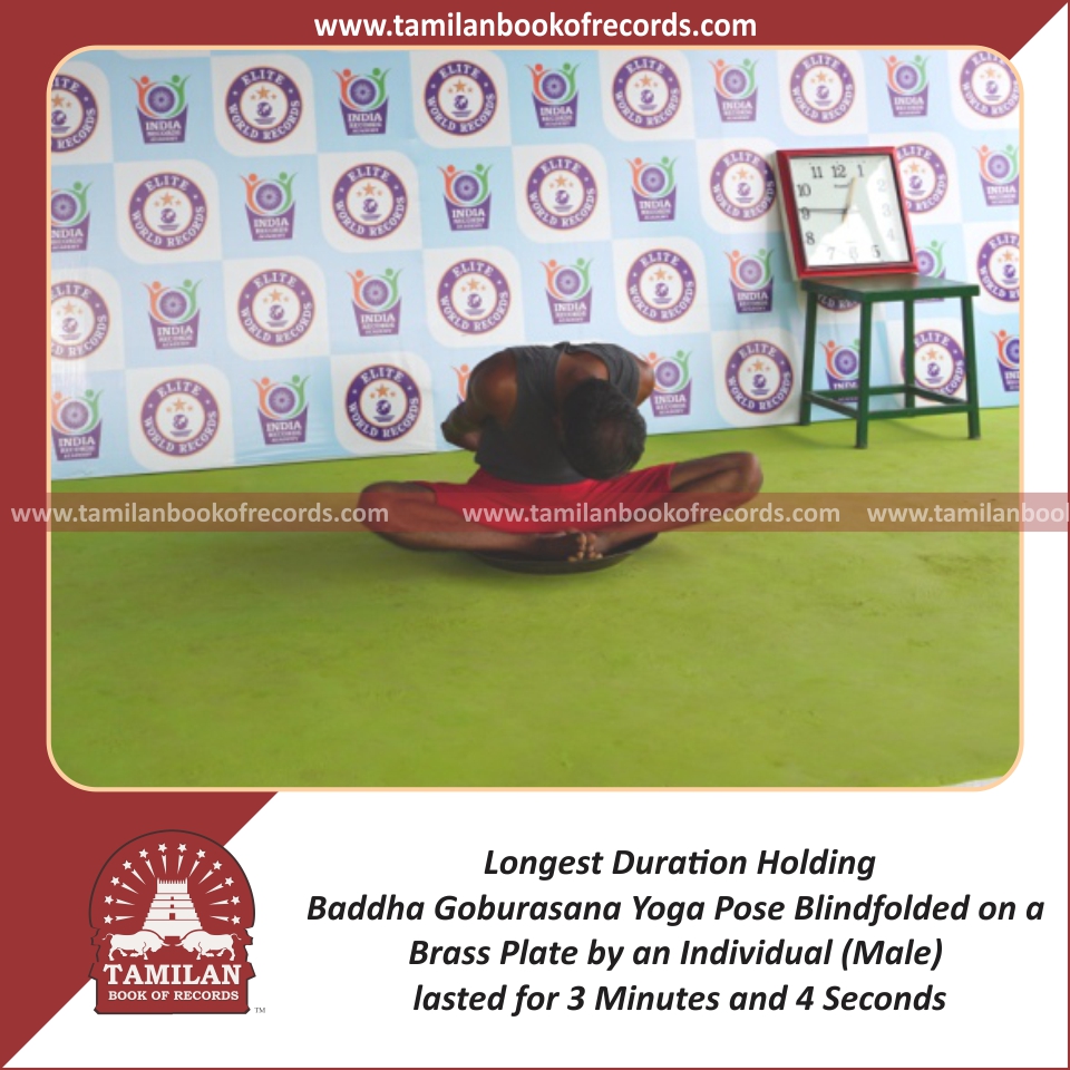 Longest Duration Holding Baddha Goburasana Yoga Pose Blindfolded on a Brass Plate by an Individual (Male)