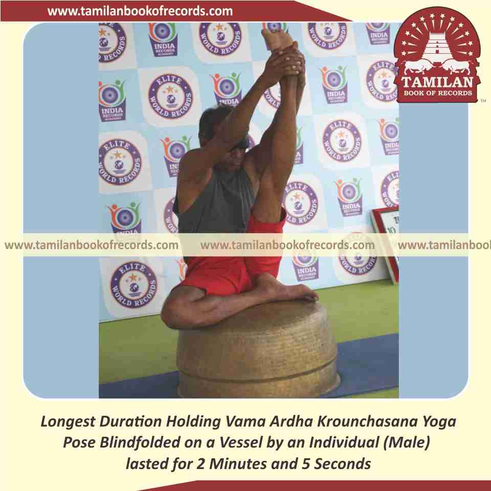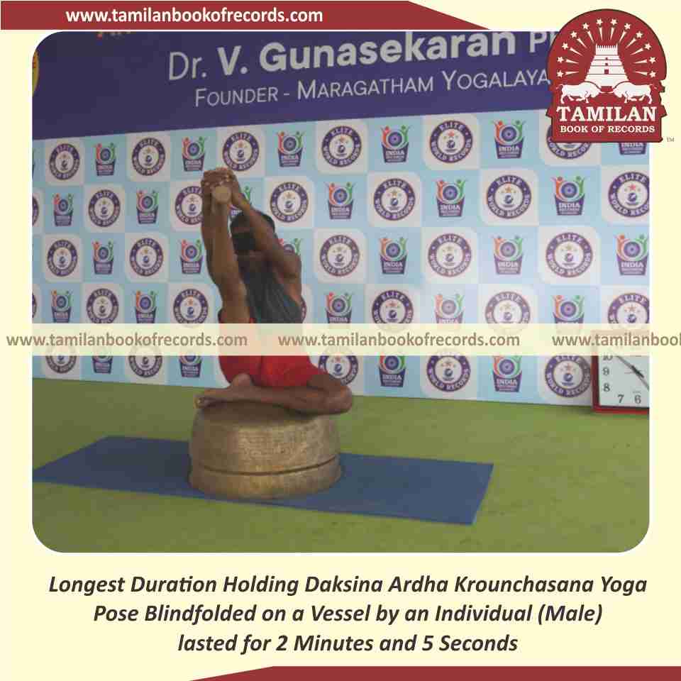 Longest Duration Holding Daksina Ardha Krounchasana Yoga Pose Blindfolded on a Vessel by an Individual (Male)