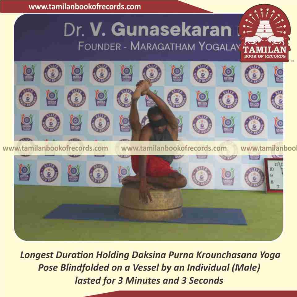 Longest Duration Holding Daksina Purna Krounchasana Yoga Pose Blindfolded on a Vessel by an Individual (Male)