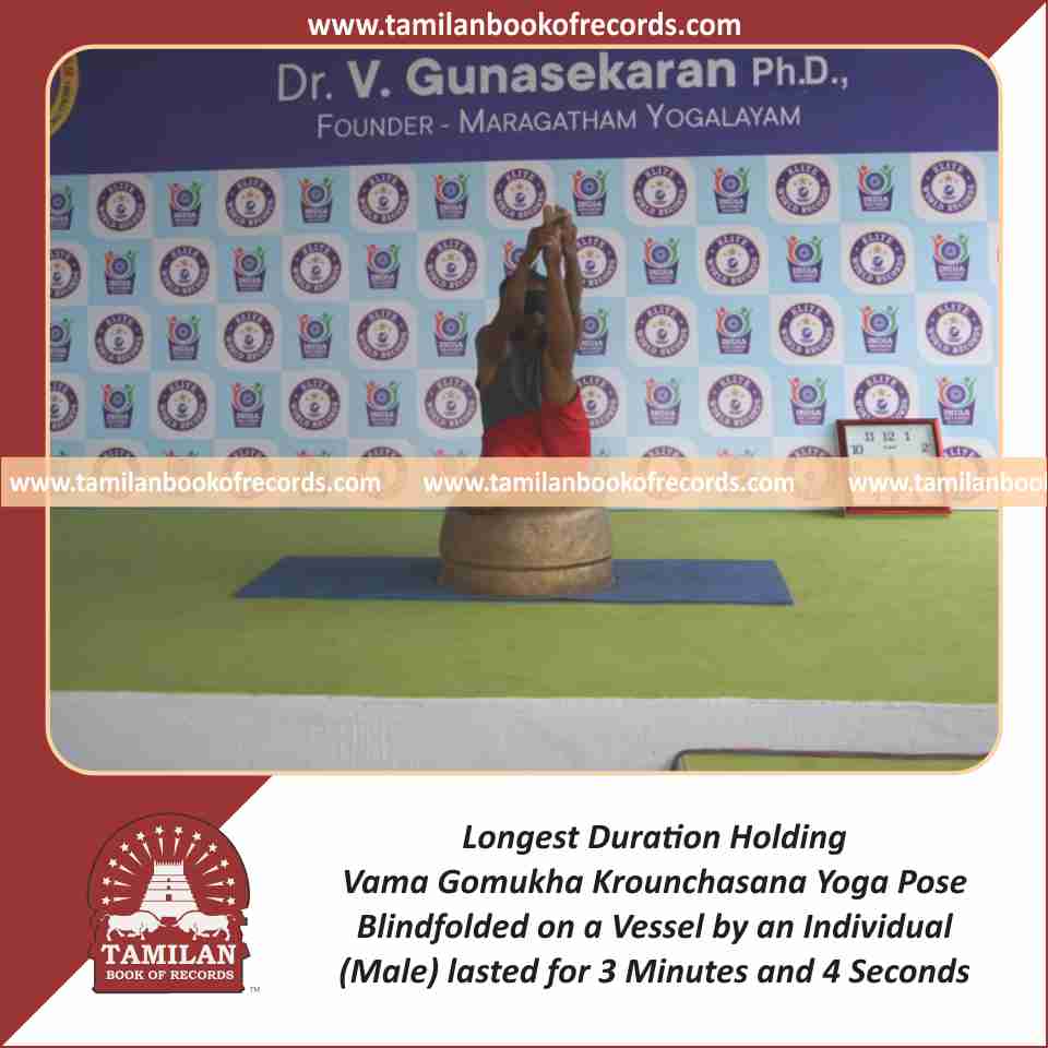 Longest Duration Holding Vama Gomukha Krounchasana Yoga Pose Blindfolded on a Vessel by an Individual (Male)