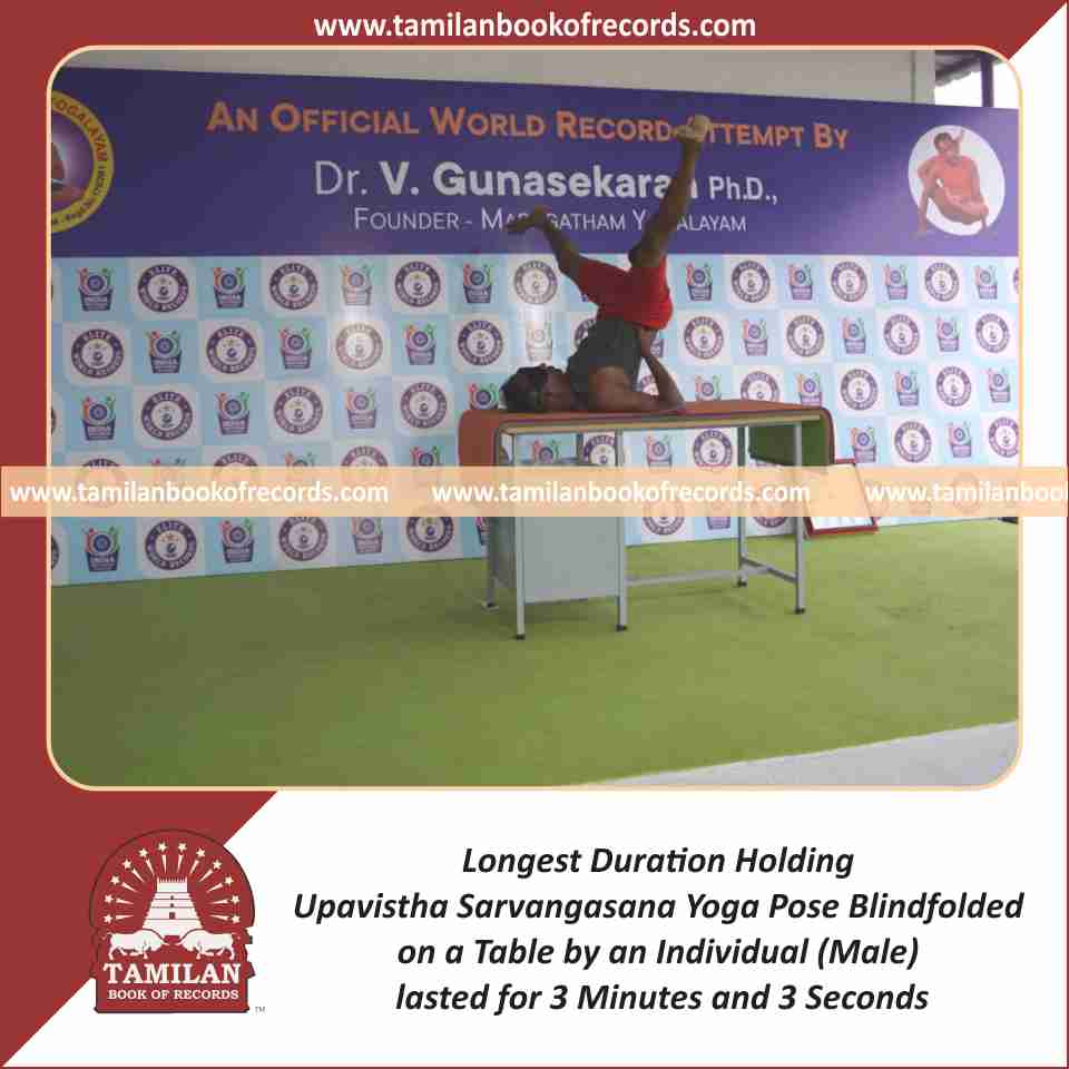 Longest Duration Holding Upavistha Sarvangasana Yoga Pose Blindfolded on a Table by an Individual (Male)