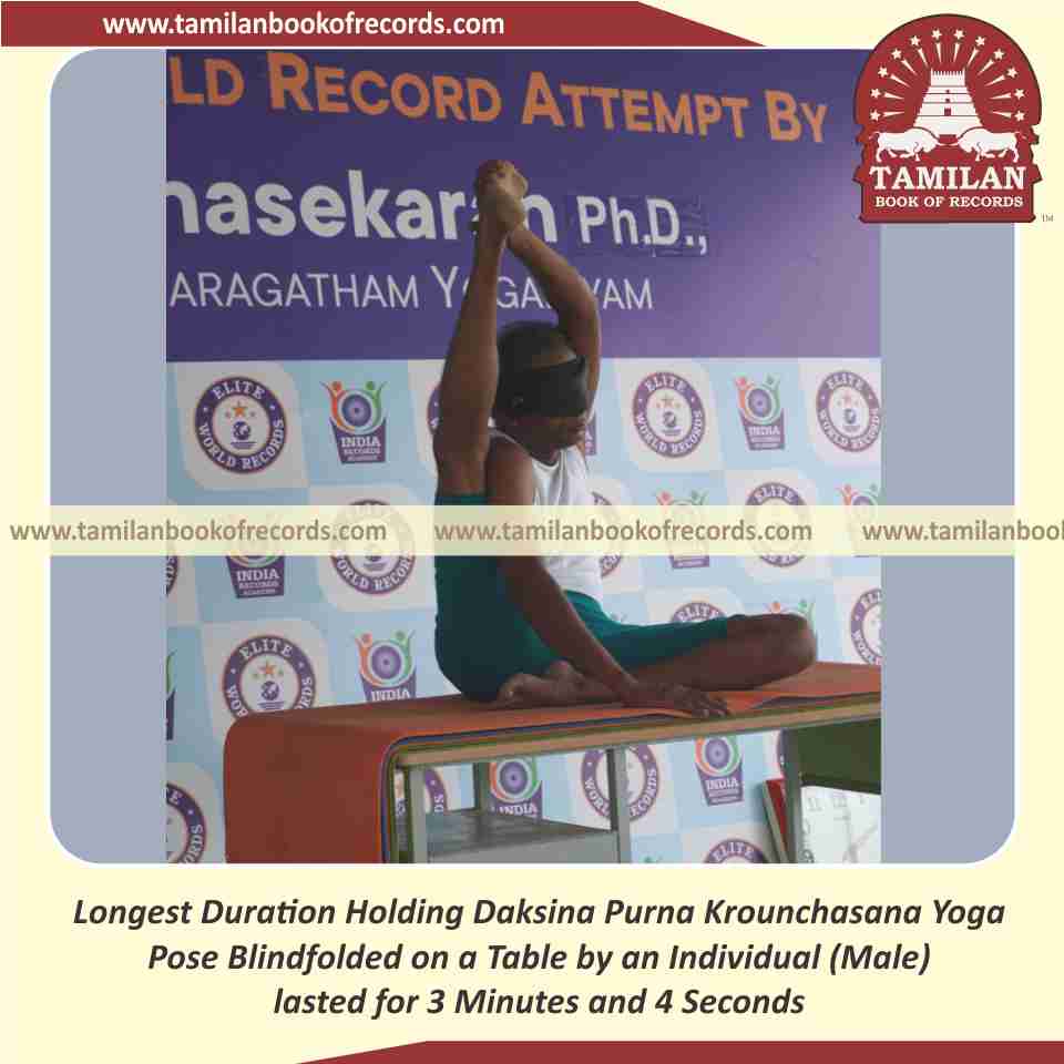 Longest Duration Holding Daksina Purna Krounchasana Yoga Pose Blindfolded on a Table by an Individual (Male)
