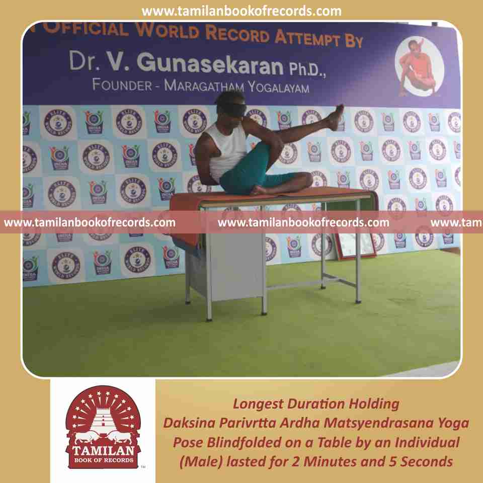 Longest Duration Holding Daksina Parivrtta Ardha Matsyendrasana Yoga Pose Blindfolded on a Table by an Individual (Male)