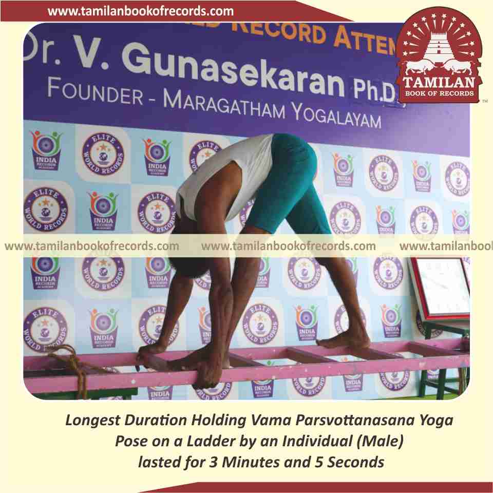 Longest Duration Holding Vama Parsvottanasana Yoga Pose on a Ladder by an Individual (Male)