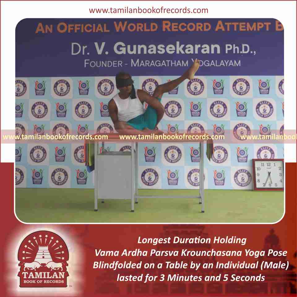 Longest Duration Holding Vama Ardha Parsva Krounchasana Yoga Pose Blindfolded on a Table by an Individual (Male)