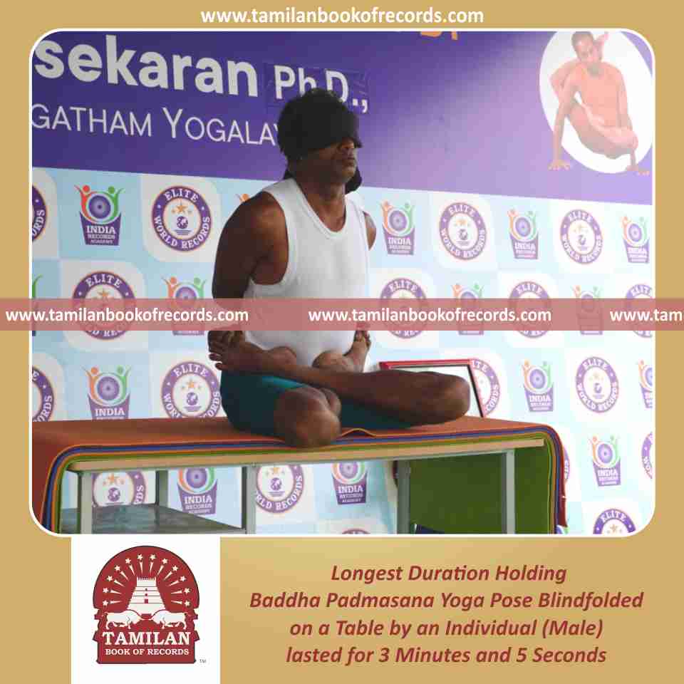 Longest Duration Holding Baddha Padmasana Yoga Pose Blindfolded on a Table by an Individual (Male)