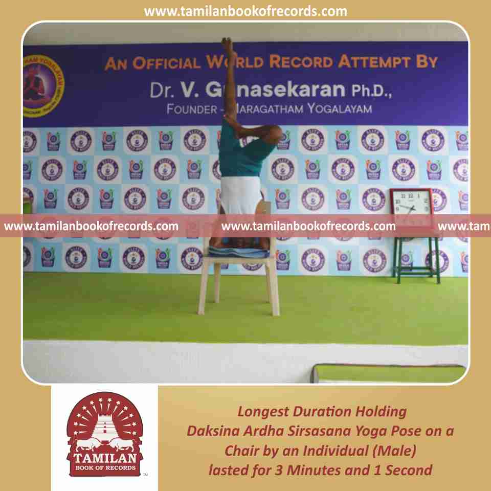 Longest Duration Holding Daksina Ardha Sirsasana Yoga Pose on a Chair by an Individual (Male)