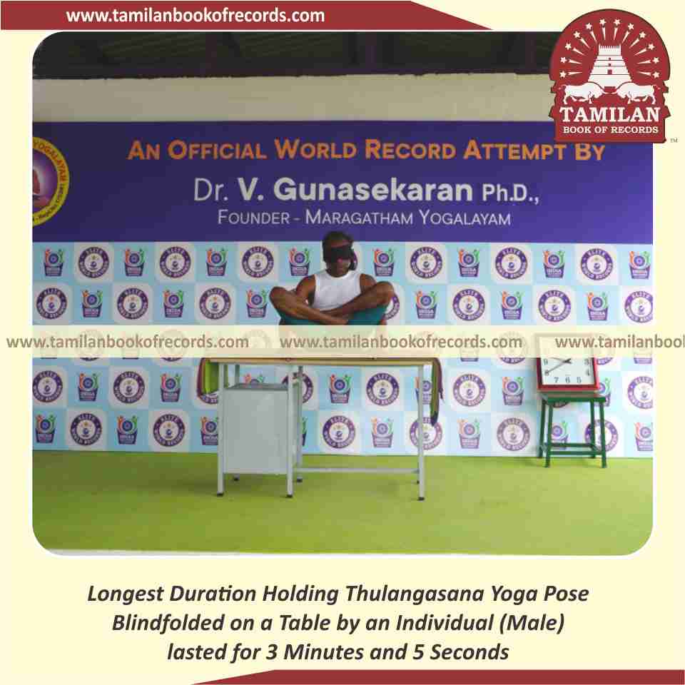 Longest Duration Holding Thulangasana Yoga Pose Blindfolded on a Table by an Individual (Male)