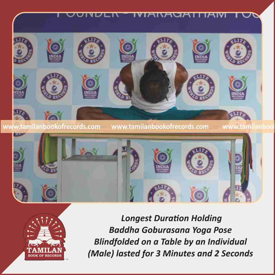 Longest Duration Holding Baddha Goburasana Yoga Pose Blindfolded on a Table by an Individual (Male)