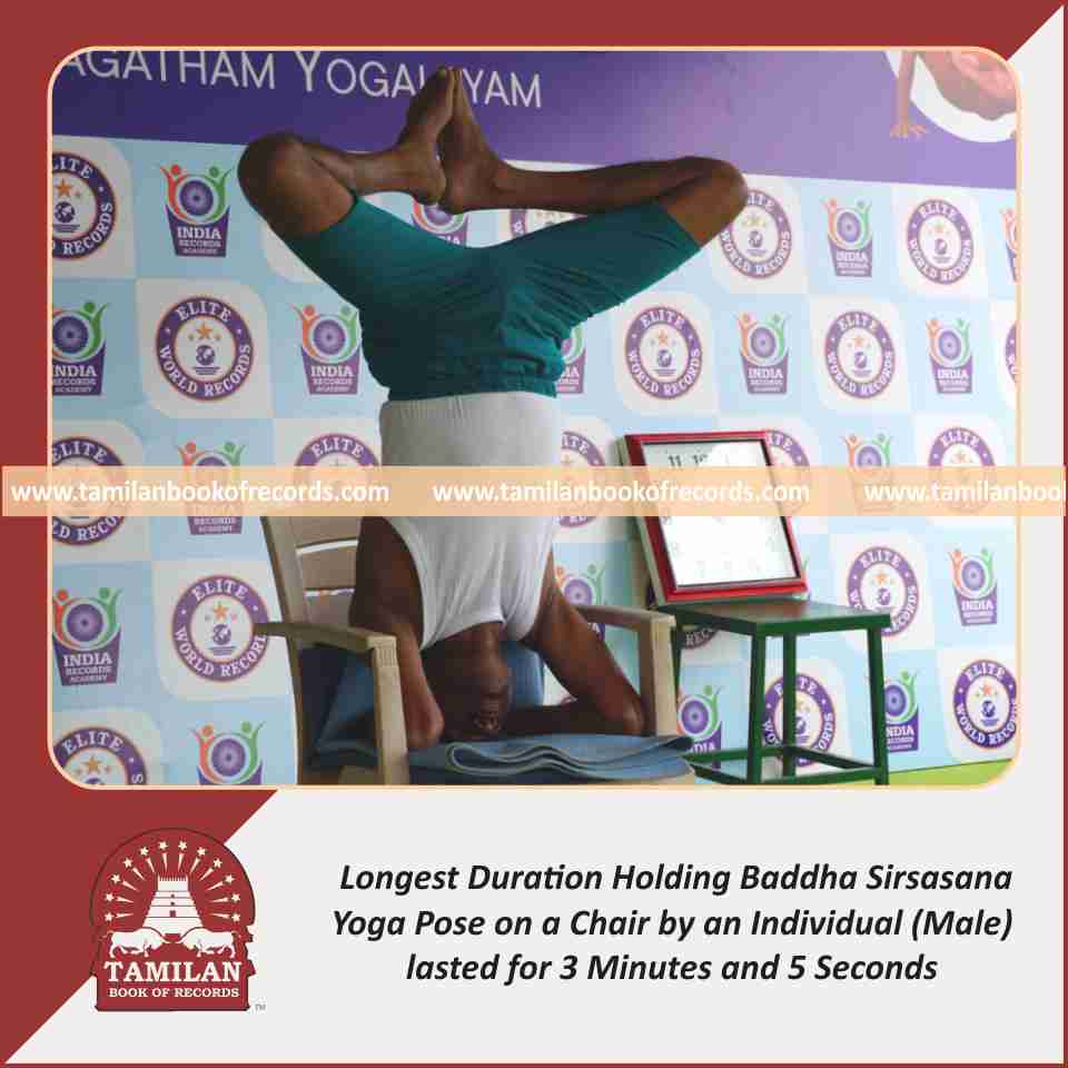 Longest Duration Holding Baddha Sirsasana Yoga Pose on a Chair by an Individual (Male)