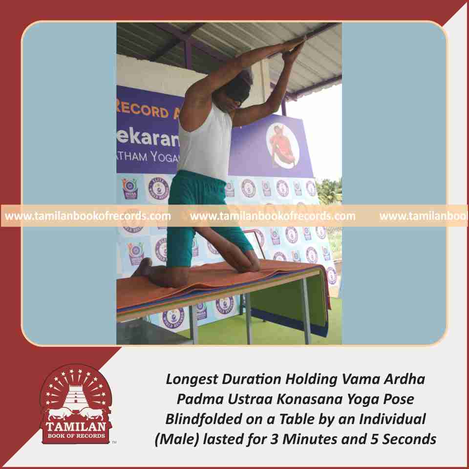 Longest Duration Holding Vama Ardha Padma Ustraa Konasana Yoga Pose Blindfolded on a Table by an Individual (Male)