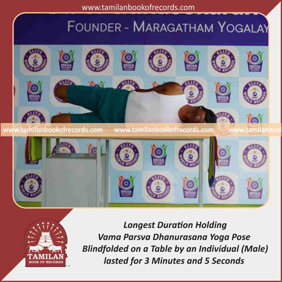 Longest Duration Holding Vama Parsva Dhanurasana Yoga Pose Blindfolded on a Table by an Individual (Male)