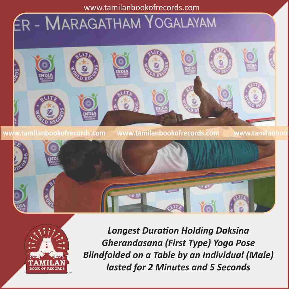 Longest Duration Holding Daksina Gherandasana (Second Type) Yoga Pose Blindfolded on a Table by an Individual (Male)