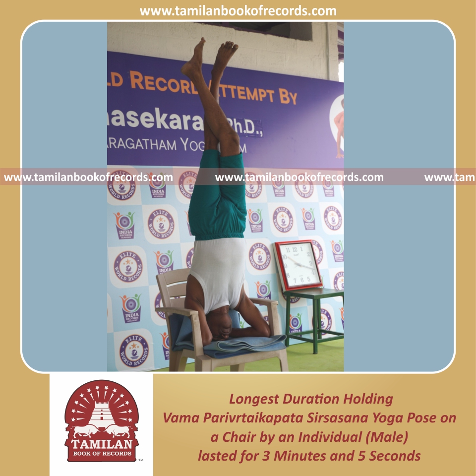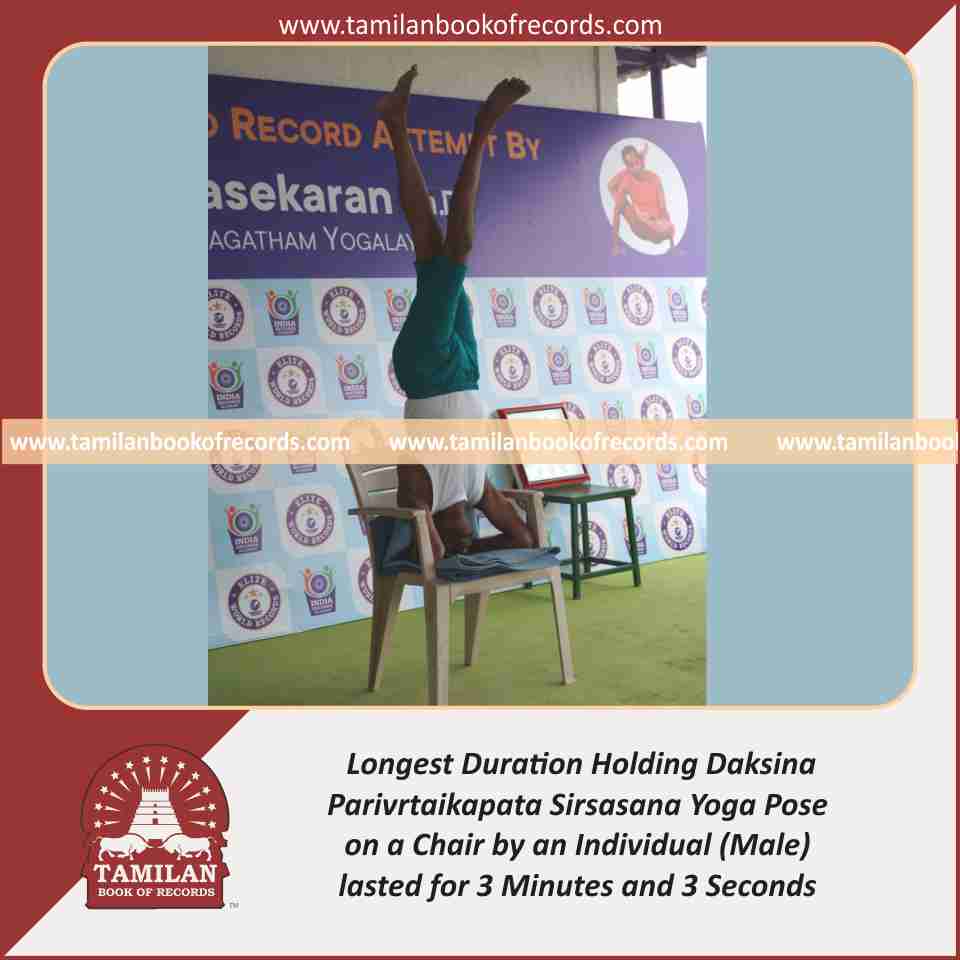 Longest Duration Holding Daksina Parivrtaikapata Sirsasana Yoga Pose on a Chair by an Individual (Male)