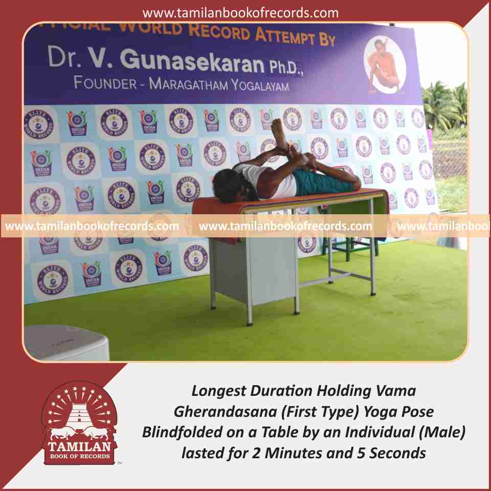 Longest Duration Holding Vama Gherandasana (First Type) Yoga Pose Blindfolded on a Table by an Individual (Male)