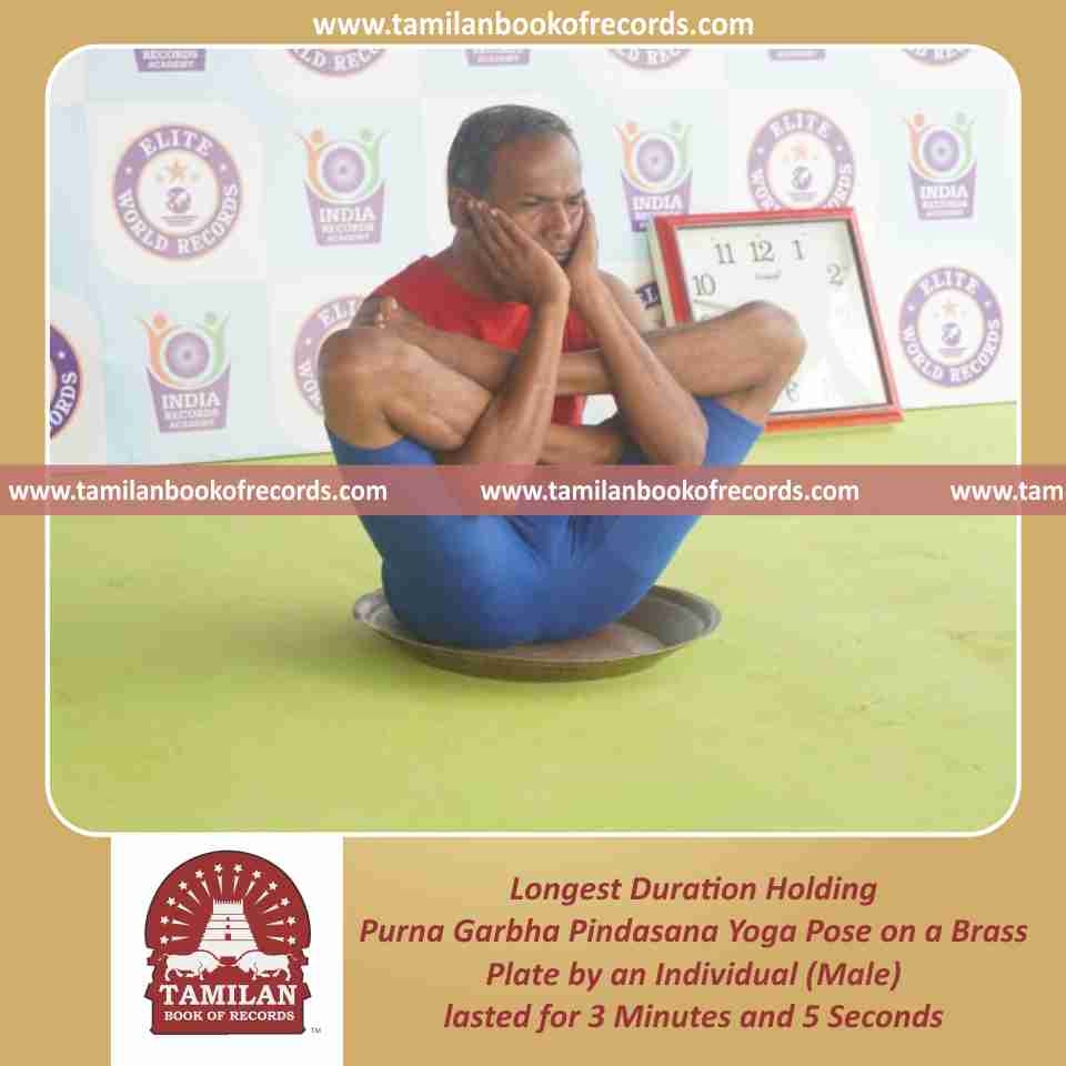 Longest Duration Holding Purna Garbha Pindasana Yoga Pose on a Brass Plate by an Individual (Male)