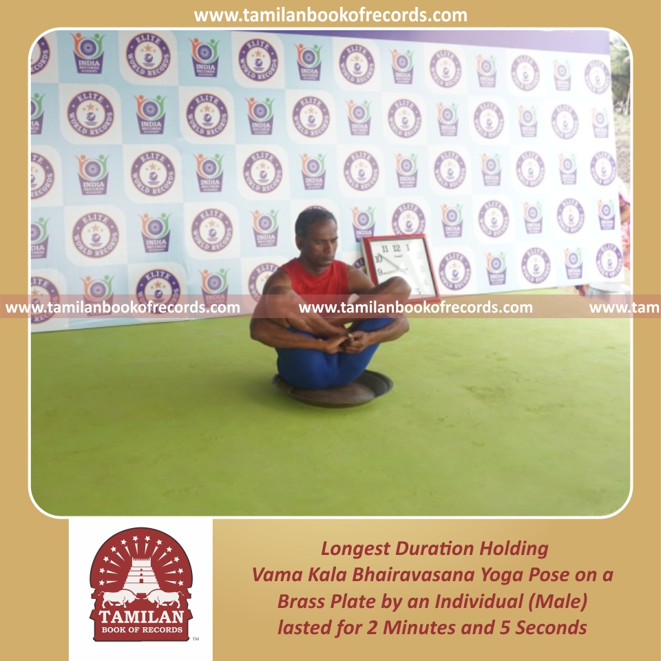 Longest Duration Holding Vama Kala Bhairavasana Yoga Pose on a Brass Plate by an Individual (Male)