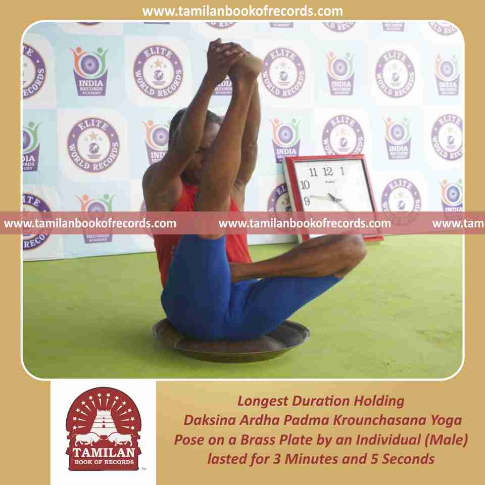 Longest Duration Holding Daksina Ardha Padma Krounchasana Yoga Pose on a Brass Plate by an Individual (Male)
