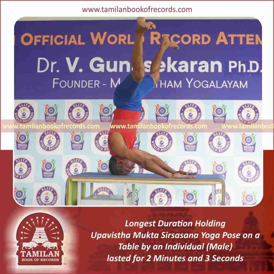 Longest Duration Holding Upavistha Mukta Sirsasana Yoga Pose on a Table by an Individual (Male)